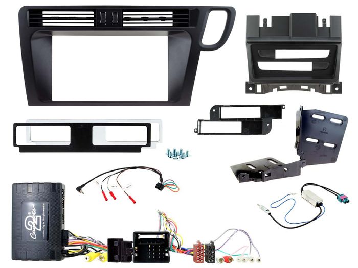 • This includes an Infodapter interface, an antenna adapter, a universal patch lead, along with a double-DIN fascia adapter finished in matte black to retain the original vehicles aesthetics and includes all of the mounting accessories for fitment.