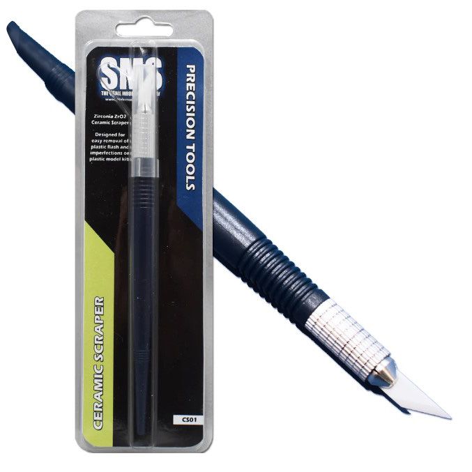 The Ceramic Scraper is a tool designed for removing flash and other imperfections in plastic models by scraping away unwanted plastic with the dull Zirconia ZrO2 blade.