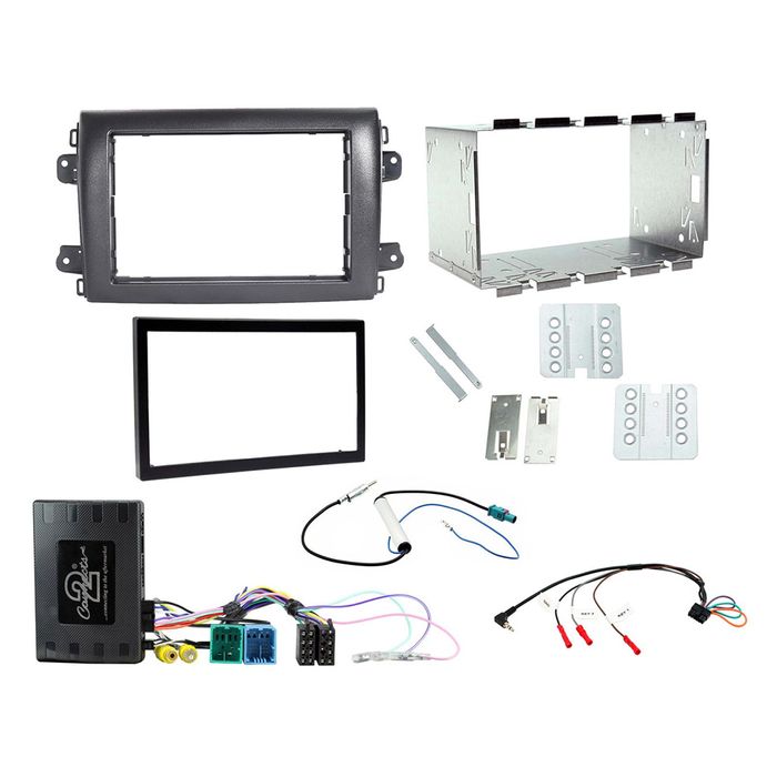 - This kit includes a bespoke interface and harness, an antenna adapter, a universal patch lead, as well as a double-DIN fascia adapter finished in black to retain the original vehicles aesthetics and includes all of the mounting accessories for fitment.