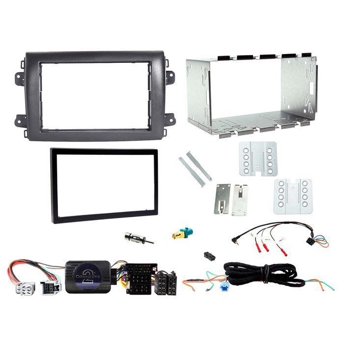 - This kit includes a steering wheel control interface and harness, an FM antenna adapter, a DAB antenna adapter, a universal patch lead, as well as a double-DIN fascia adapter finished in black to retain the original vehicles aesthetics and includes all of the mounting accessories for fitment.