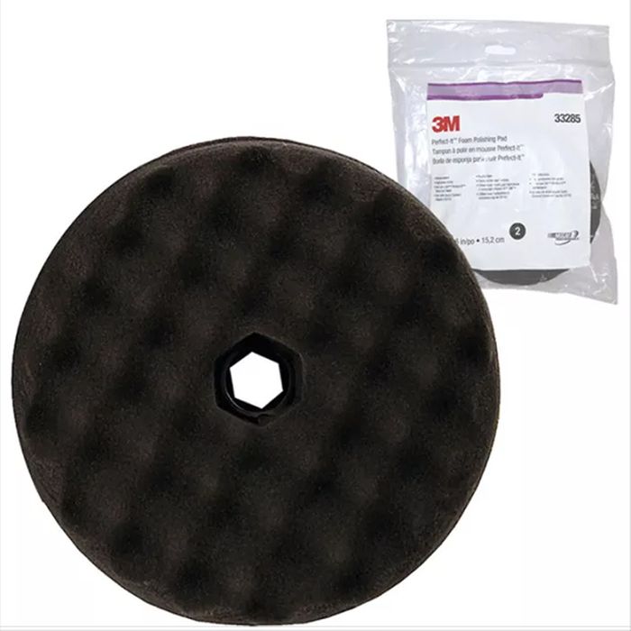 3M™ Perfect-it™ Foam Polishing Pad is a soft foam buffing pad used to buff out fine scratches created from compounding steps. The waffle face gives you greater surface contact area than flat surface pads over contoured surfaces, minimizes heat buildup during buffing and helps eliminates swirl marks. It also helps the pad hold the polish and reduce slinging.