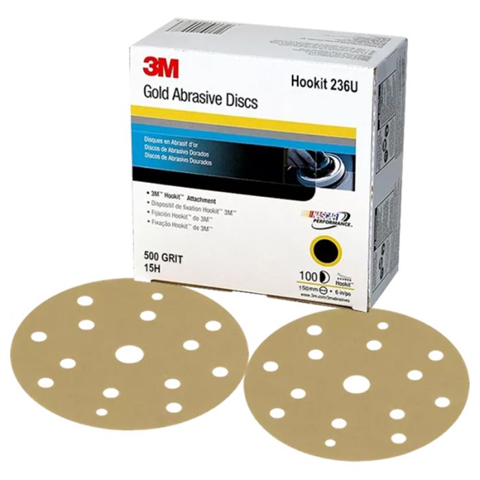 Our 3M™ Hookit™ Gold Disc 216U is precision-coated for long life and exceptionally smooth finishing to auto body sanding projects. It features light A-weight paper backing with sharp, durable aluminum oxide abrasive a fast, aggressive cut, yet a uniform finish for feather-edging and primer sanding. Our load-resistant coating and available 5- or 6-hole pattern provide superior dust resistance.