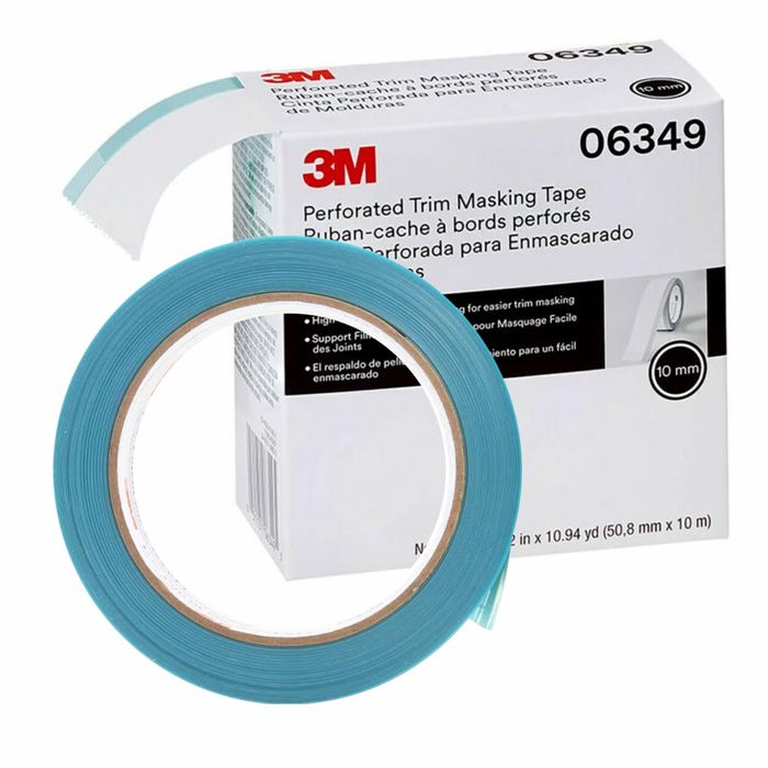3M™ Perforated Trim Masking Tape features a rigid band along one edge that slips gently behind moldings, lifting them slightly from the body. This tape allows paint to flow beneath the moldings while masking their exteriors for a professional, finished paint job without removing or replacing the moldings or rework for paint lines. Perforations allow you to tear the tape by hand, saving time.
