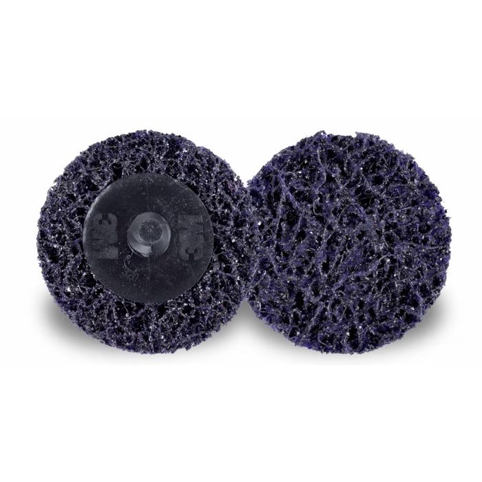 Scotch-Brite™ Roloc™ Clean and Strip XT Pro Disc features silicon carbide abrasive mineral incorporated into an open nylon web. It effectively removes rust, paint, mill scale, coatings and adhesives from surfaces without significantly altering the base material. The high-strength fibres are highly conformable, resist chunking and loading, and perform well on the edges of a workpiece.