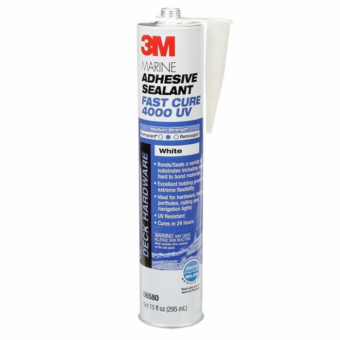 3M™ Marine Adhesive Sealant 4000 UV is a one-component, medium-strength, moisture-curing, gap-filling sealant that cures to form a firm, flexible and waterproof seal on aluminum, wood, gel coat and fiberglass, making it well-suited for marine applications above or below the waterline. This product offers excellent UV resistance for reliable long term performance.
