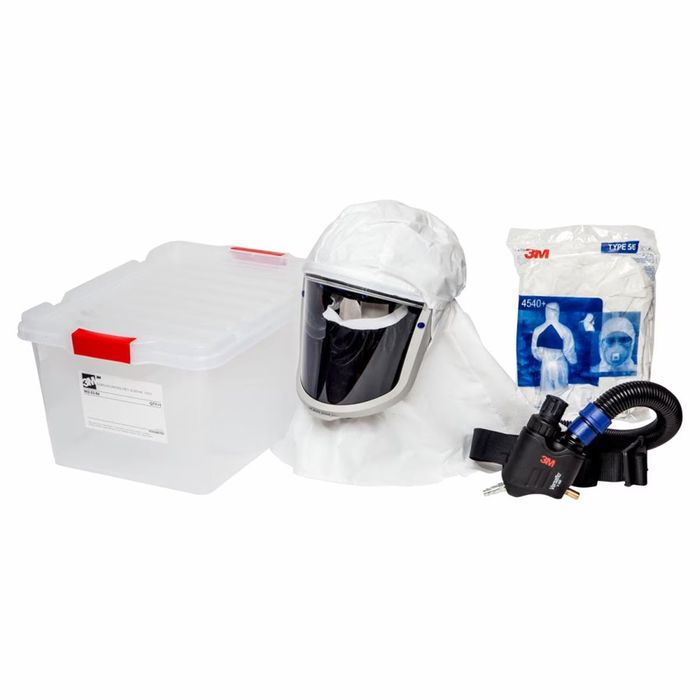 The 3M™ Versaflo™ Spray Painters Kit, ALVM-106E is a ready-to-use assembly that delivers integrated supplied air respiratory, eye and face with optional hearing protection. The kit includes Versaflo Supplied Air Regulator, V-500E with accessories and Versaflo High Impact Faceshield M-106 with comfort faceseal.