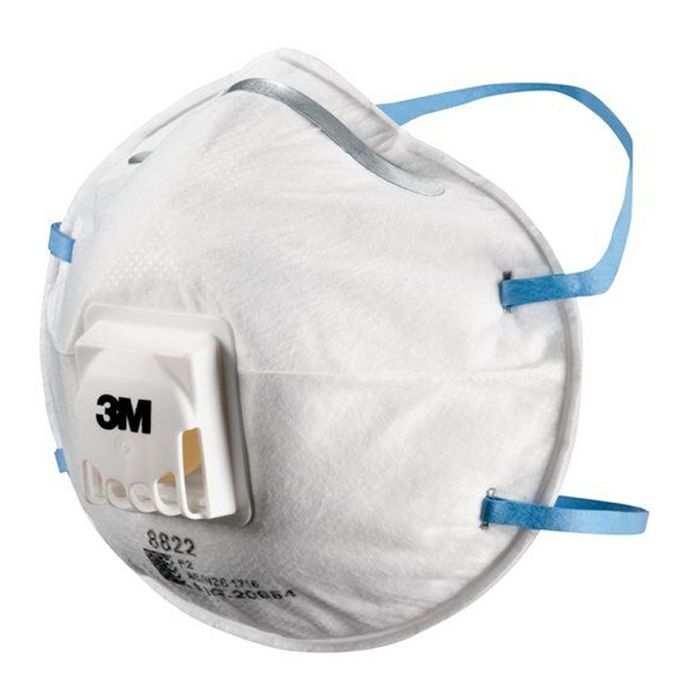 3M 8822 CUPPED PARTICULATE RESPIRATOR MASK P2 VALVED 10PK