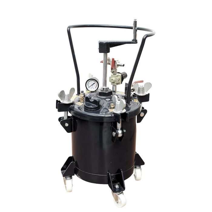 IWATA 2SPRAY PRESSURE POT MANUAL AGITATION 10L POT WITH GAUGES WHEELS & LINER