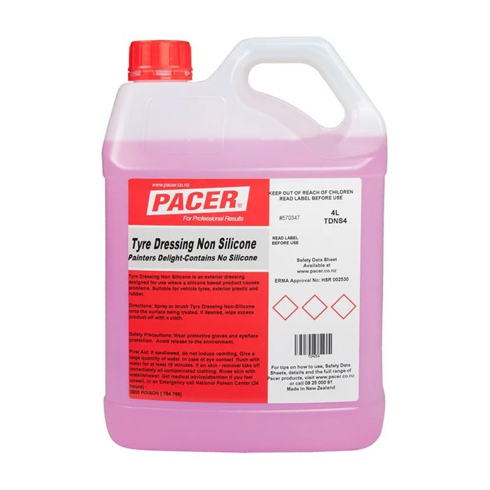 Directions: Spray or brush Tyre Dressing Non-Silicone onto the surface being treated. If desired wipe any excess product off with a cloth.