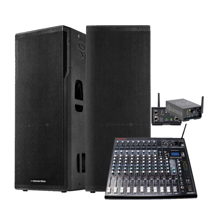Take your live sound to the next level with a **professional, cable-free setup** featuring the **Cerwin Vega CVM12 SKAA Wireless Mixer**, dual **CVXL-215 speakers**, and **SKAA Streetheart Wireless Receivers**.
