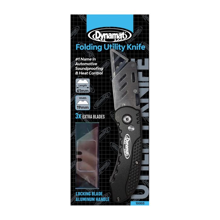 Easily cut Dynamat sheets, acoustic foams, boxes, trim, carpet, and much more. Its lightweight aluminum folding construction, locking blade and pocket clip makes it an easy, everyday carry tool. Also comes with 3 extra blades.