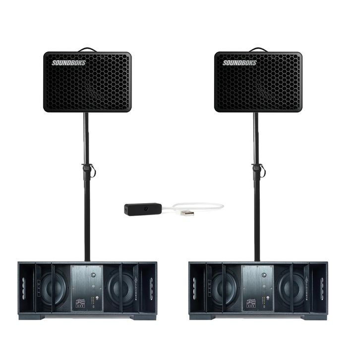 SOUNDBOKS GO PAIR + DFB SUBWOOFER PAIR BATTERY POWERED PRO AUDIO KIT - 36MS FIXED LATENCY