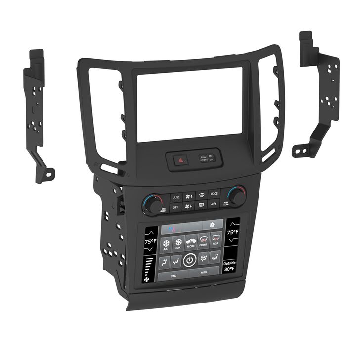 Metra’s TurboTactile™ and TurboTouch® kits come together and feature the best of what each kit has to offer. This kit features easy-to-use rotary knobs that allow for the control of climate functions along with a 7” touchscreen that retains most of the features normally lost when replacing the factory radio. Additional factory-style hard buttons have laser-etched graphics for access to vehicle personalization menus. Metra’s built-in patented interface technology retains climate control, safety, and steering wheel control features. The vehicle’s hazard button and passenger airbag indicator have also been integrated into the kit. This kit is painted scratch-resistant matte black to match the factory finish and includes installation parts needed for a Double-DIN aftermarket radio installation.