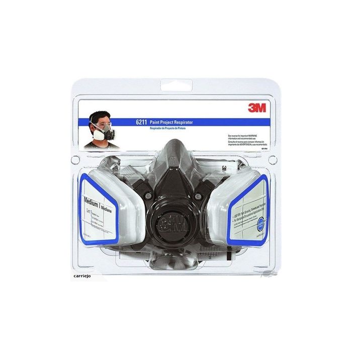 The 3M™ Paint Project Respirator helps provide protection against particles and organic vapours with the convenience of an all-in-one respirator kit. Designed for professionals, this reusable respirator is ideal for spray painting and projects that require solvents or pesticides. The swept-back 3M™ Organic Vapour Cartridges allow an enhanced field of view and when combined with the provided filters, offers highly effective filtration on the job. When you're handling potentially harmful chemicals, it's important to protect yourself–so rely on the fit and protection of the 3M™ Paint Project Respirator. Size Medium.