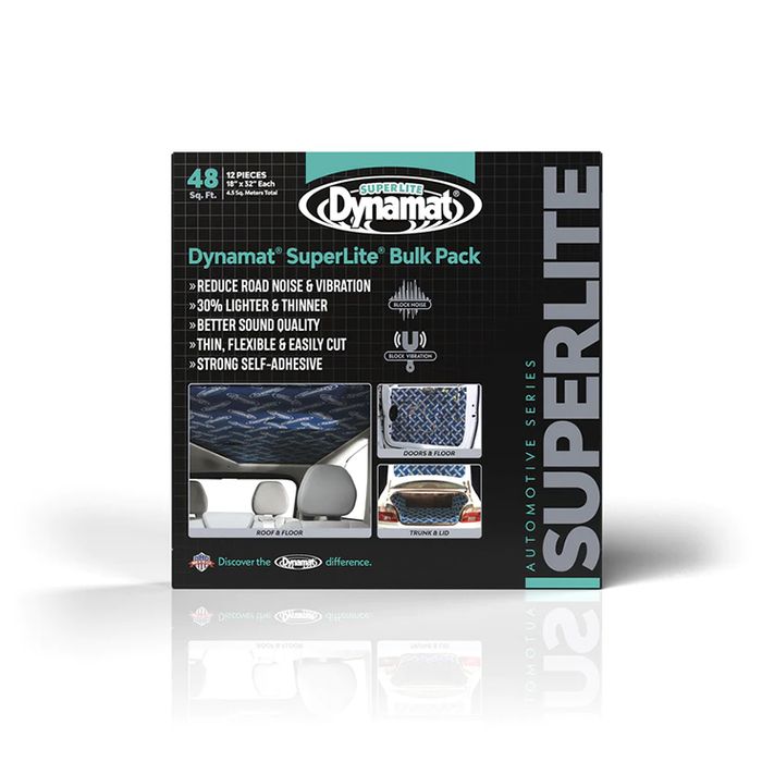 Dynamat SuperLite is 30% lighter and 30% thinner for the vehicle owner who wants a quiet, solid, ride, while keeping weight to a minimum. SuperLite can be used for full coverage on your vehicle's interior or just in problem areas of high sound resonation.