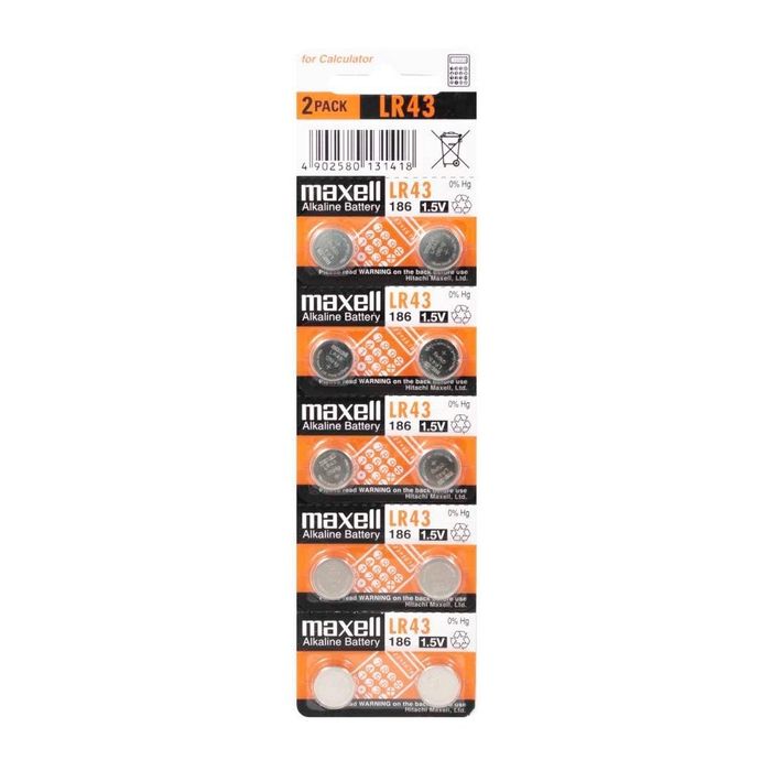 MAXELL ALKALINE BATTERY LR43 10 PACK 1.5V RETAIL PACKAGING