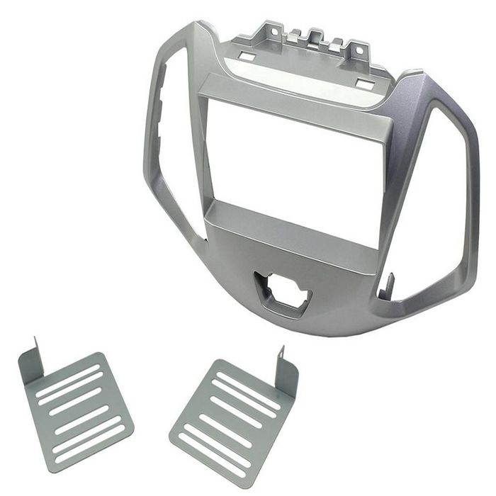 - Ford EcoSport Double Din Fascia Plate finished in Silver to match the OEM dash. With side brackets.